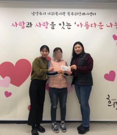 남양주시 북부희망케어센터에 몇 년 동안 희망케어센터에서 도움을 받던 김바다씨가 명절을 앞두고 후원자로 센터를 방문했다.