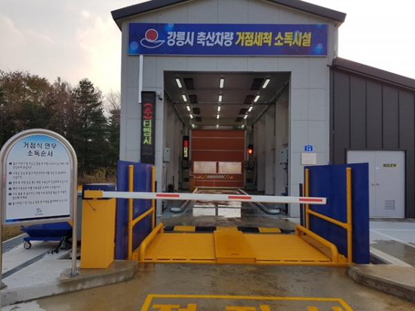 구제역의 주된 전파경로로 지적되어온 축산 관련 차량에 대해 국가가축방역시스템을 통한 24시간 감시 및 현장 예찰 요원을 상시 운용하고 있으며, 특히 축산 관련 시설 출입 차량으로 등록된 차량을 모두 소독대상으로 지정해, 강릉시 축산차량 거점 세척·소독시설에서 소독실시 후 소독필증을 발급받아야만 관내 통행과 축사 출입이 가능하게 해 차량을 통한 전염병의 관내 유입을 완벽히 차단하고 있다.
