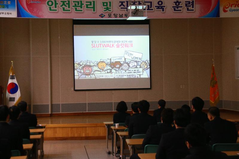 포항남부소방서(서장 김학태)는 1일 본서 3층 대회의실에서 직원 110여명이 참석한 가운데 효율적인 업무 능력향상을 위한 직장교육훈련과 성폭력 및 가정폭력 예방교육을 실시했다.이날 실시한 교육의 주요내용으로는 ▲청렴 공직윤리 및 부조리 방지교육 ▲음주운전 예방교육▲현장활동 시 안전사고 예방교육을 실시했으며 마지막 순서로 가정과 직장 내의 폭력예방을 위해 성희롱, 성폭력, 가정폭력 등에 대한 통합적인 예방교육으로 진행됐다.김학태 서장은“이번 교육을 통해 직원들이 가정과 직장 내에서 폭력 없는 행복한 생활을 해나가는데 도움이 됐길 바란다”며 “앞으로도 공직자로서의 품위와 도덕성을 준수해 도민으로부터 신뢰받는 포항남부소방서가 되겠다"고 말했다. // 심후보 기자 (sky626201@naver.com)