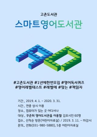 김포시 고촌도서관은 오는 4월 1일부터 내년 3월 31일까지 2019년 ‘스마트영어도서관’을 운영한다.