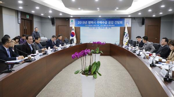 평택시는 지난 11일 시청 종합상황실에서 시민, 전문가, 관계자들이 한자리에 모여 ‘2019년 평택시 주택수급 공감 간담회’를 개최했다.