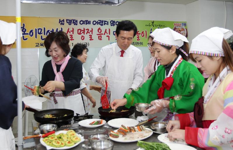 포항시 다문화가족지원센터(센터장 윤영란 여성가족과장)는 설을 앞두고 지난29일 센터에서 결혼이민여성을 대상으로 우리나라 대표 설 명절 음식과 전통놀이를 체험할 수 있는 특강을 실시했다. 이날 특강은 초기입국자 및 설 음식에 관심이 많은 결혼이민여성 20여명이 참여해 한복 입기를 시작으로, 떡국과 각종 전, 삼색나물 만들기, 전통놀이인 윷놀이 체험까지 다양하게 진행됐다. 특히 이날은 이강덕 포항시장 내외가 참석해 결혼이민여성들과 떡국을 만들고 함께 식사하며 결혼이민여성들이 한국생활 중 겪는 고충을 듣는 시간도 가졌다. 응웬황미눙(베트남) 씨는 “어린 나이에 한국에 와서 한국어나 한국문화에 대해 배울 기회가 없었는데 이번 특강을 통해 한국문화에 대해 배울 수 있어서 뿌듯하다”며, “한복을 입고 요리를 하니 진짜 한국 새댁이 된 것 같고, 이번 설에는 가족들에게 직접 요리해 대접하겠다”고 말했다. 이강덕 포항시장은 “이번 특강을 통해 결혼이민여성들이 한국문화를 익히는 뜻 깊은 시간이 되었길 바란다”며 “각국에서 오신 분들이 포항을 제2의 고향으로 여기며 행복한 가정생활을 할 수 있도록 최선을 다 하겠다”고 말했다. 한편 포항시 다문화가족지원센터는 결혼이민여성의 사회적응과 다문화가족의 안정된 생활을 위한 △개인 및 가족상담 △취·창업교육 △집합교육 △원거리지역 결혼이민자를 위한 방문교육 △통번역서비스 △나눔봉사단 △출산용품지원사업 등을 진행하고 있다.