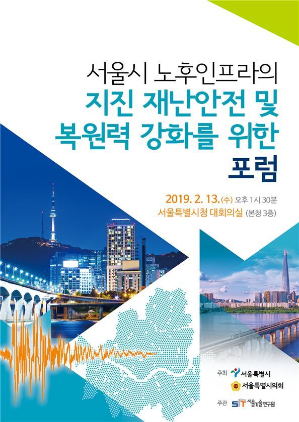 서울특별시 및 서울시의회가 주최하고, 서울기술연구원이 주관하는 `서울시 노후인프라의 지진 재난안전 및 복원력 강화 포럼`이 오는 13일 오후 1시 30분부터 서울시청 3층 대회의실에서 열린다.