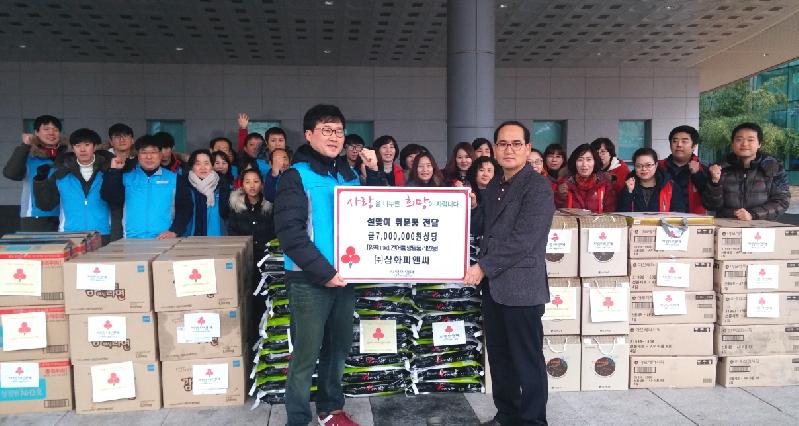 명절이 다가올수록 외로움과 경제적 어려움을 겪는 이웃을 위해 아름다운 나눔을 이어가고 있는 기업이 있어 민족고유의 설명절을 더욱 빛나게 하고 있다. 포항시 소재 도장공사 전문업체인 (주)삼화피앤씨 임직원과 가족 20여명은 설 명절을 앞둔 지난30일 포항시 주민복지과 희망복지지원단과 함께 어려운 이웃들에게 훈훈한 마음을 선물했다. 이날 ㈜삼화피앤씨는 백미10Kg 82포, 건어물 40세트, 라면 48박스, 생필품 40세트 등(700만원 상당)을 포항시 주민복지과 희망복지지원단 통합사례관리사 11명과 함께 직접 저소득층 40세대를 방문해 전달했다. (주)삼화피앤씨 손경호 회장은 “이번 나눔을 통해 어려운 이웃과 함께 훈훈한 정을 느낄수 있어 기쁨이 몇 배로 불어난 것 같다”며 “따뜻한 마음을 담아 전달된 성품이 소외계층에게 다소나마 위안이 되길 바란다”고 말했다. 성품을 전달 받은 이OO(61세, 상대동)어르신은 “이번 명절도 여느 때와 같이 혼자일거라 생각했는데 이렇게 찾아와 주셔서 마음만이라도 풍요로운 명절을 보낼 수 있게 됐다”며 감사의 마음을 전했다. 한편 (주)삼화피앤씨는 기쁨의 복지재단이 운영하는 무료급식소에 백미 후원, 지역 저소득층에게 연탄과 난방유를 지원하는 등 다각도의 사회 환원 활동 등으로 지역사회 진정한 나눔 실천의 귀감이 되고 있다.