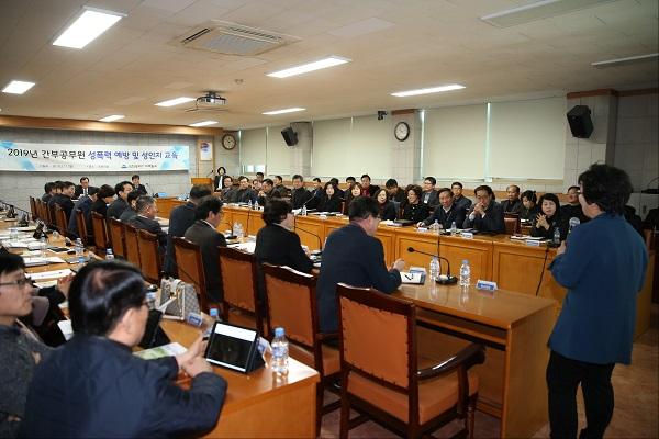 교육은 이화여자대학교 젠터법학연구소 장명선 교수가 맡아 성인지 감수성 훈련, 성인지 정책과 성별영향평가제도의 이해, 직장 내 성폭력·성희롱 예방 교육에 대해 강의했다.