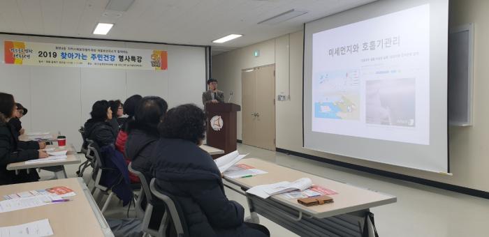 이날 특강은 시민 100여명을 대상으로 한림대학교 동탄성심병원 백문성 호흡기내과 교수가 ‘미세먼지와 호흡기 건강관리’에 관한 교육을 실시했다.