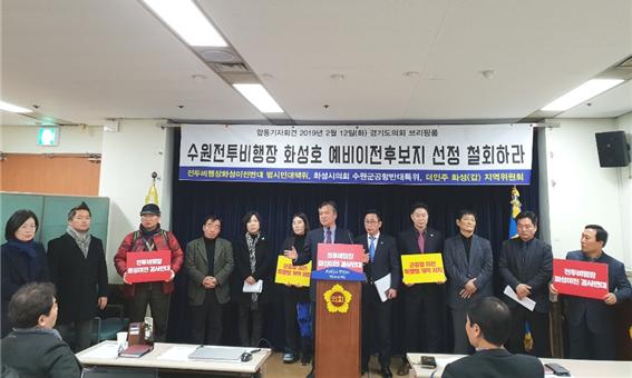 12일 오전 10시 30분 경기도의회 브리핑룸에서 수원군공항 예비이전후보지 선정 철회를 촉구하는 기자회견이 열렸다.