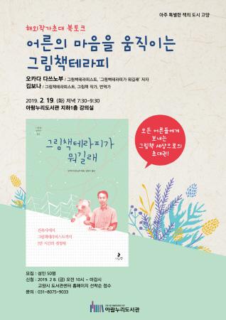 이번 해외작가 초대 북토크에 참여를 원하면 고양시 도서관센터 홈페이지에 접속·신청하면 된다. 북토크는 2월 19일 저녁 7시 30분부터 두 시간 동안 아람누리도서관 지하1층 강의실에서 열린다. 관련 문의는 고양시 아람누리도서관센터로 하면 된다.