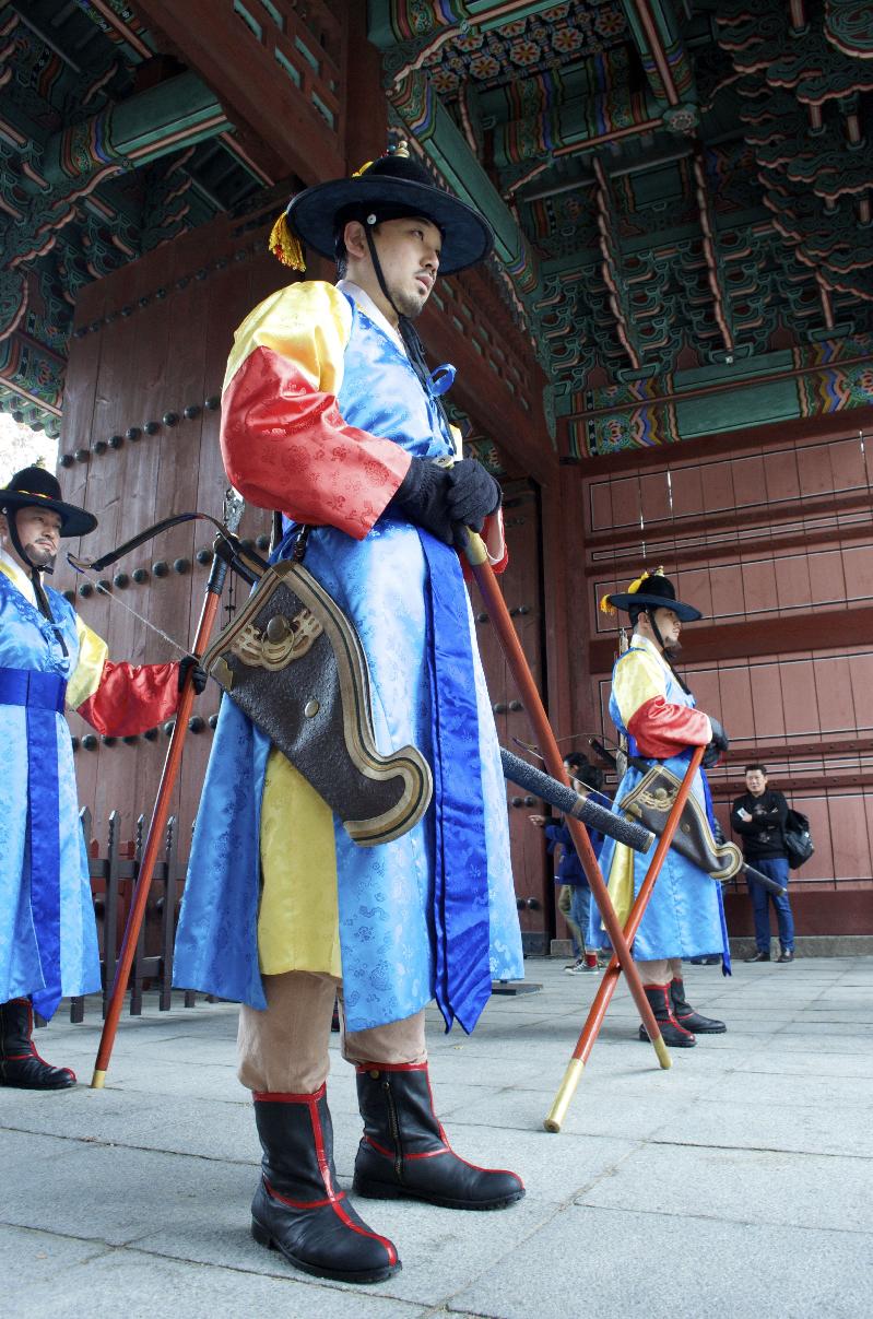 현의(玄衣) : 검정색 옷, 주상(朱裳) : 붉은색 치마수문장 교대의식이 진행되는 동안에는 덕수궁 앞에 모인 관람객들 주변과 덕수궁 내부를 돌며 새해 복을 기원하는 주문을 외치고, 교대의식이 끝나면 현장에 있는 관람객과 함께 체험 참가자들이 취타대를 선두로 하여 대동놀이 하듯 어우러져 춤을 추며 덕수궁안을 한바퀴 도는 한바탕 놀이마당을 벌인다.