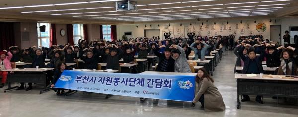 부천시는 지난 12일 자원봉사단체 간 네트워크 활성화를 위해 자원봉사단체 간담회를 실시했다. 이날 행사에는 부천시 자원봉사단체 40곳의 임원진 100여 명이 참석했다.
