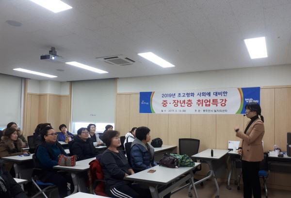 동두천시는 지난 12일 일자리센터 강의실에서 주부들을 대상으로 취업역량 강화를 위한 맞춤형 특강인 ‘2019년 초고령화 사회에 대비한 중·장년층 취업’ 프로그램을 진행했다고 밝혔다.