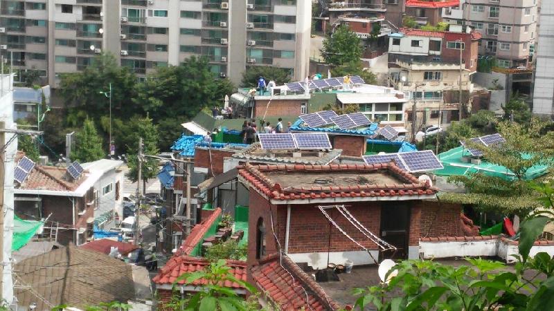 은평구 산골마을에는 특별한 태양광이 있다. 바로, 세븐일레븐에서 진행한 1만명의 시민참여 인증사진 캠페인으로 기부된 태양광발전소(21세대, 총10kw)가 그것. 작년 7월 설치되어 매월1,050Kwh 에너지를 생산하고 있다.