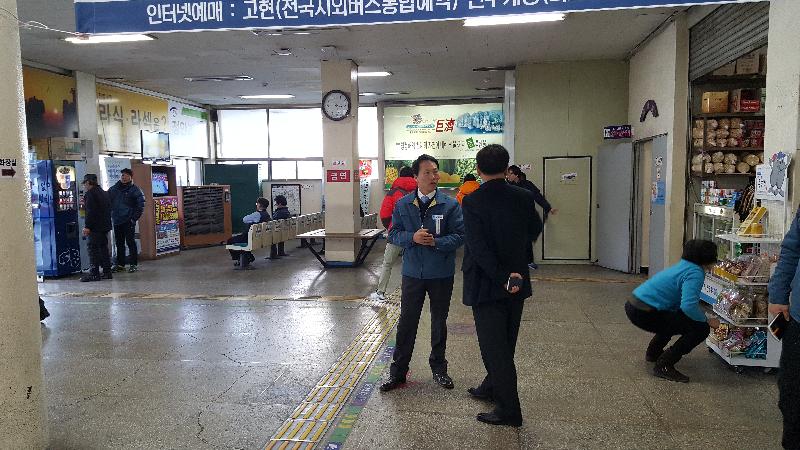 고현동장은 고향을 찾아오는 분들이 터미널 시설 이용에 불편함이 없도록 주변청결 등에 대해 터미널 관계자와 현장을 둘러보며 시정 조치를 요구하였으며, 화장실 내의 청결에 많은 관심을 가져달라고 주문하였다. 특히, 버스의 매연으로 인한 터미널 내부 시설 변색에는 빠른 시일 내에 도색을 실시하여 깨끗한 환경조성에 최선을 다해 달라고 말했다.