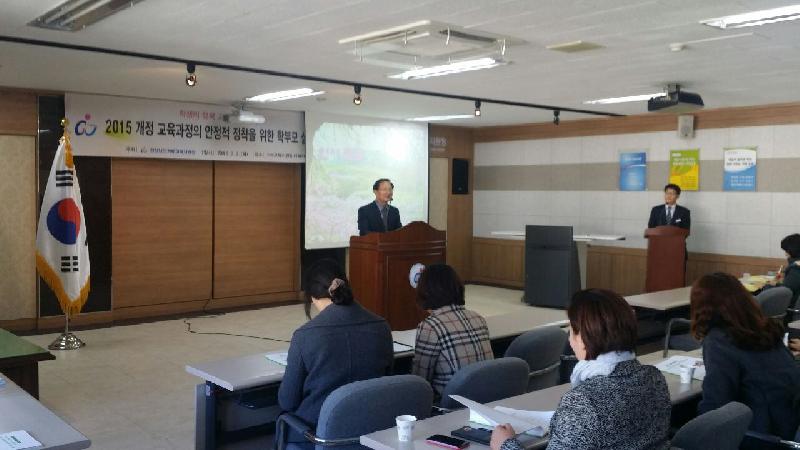 2017년 3월에 초1∼2학년, 2018년 3월에 중1학년, 고1학년부터 연차적으로 적용되는 「2015 개정 교육과정」은 미래 국가 사회적 요구에 따라 학교교육 전 과정에서 학생들에게 중점적으로 길러주고자 하는 미래사회 대비 핵심역량의 설정, 통합사회·통합과학 등 문·이과 공통 과목 신설, 연극·소프트웨어 교육 등 인문·사회·과학기술에 대한 기초 소양 교육을 강화하고 있다. 특히, 교과별 핵심 개념, 원리를 중심으로 한 학습내용의 적정화, 교실 수업을 교사 중심에서 학생 활동 중심으로 전환하기 위한 수업 혁신 및 평가체제의 확립을 그 기본 방향으로 하고 있으며, 「2015 개정 교육과정」강의는 교육과정 개정 실무를 직접 참여한 교육부 최영선 연구사, 「공교육정상화법 이해」는 김재훈 장학사가 담당하여 학부모들의 교육과정에 대한 이해도를 한층 더 높일 수 있었다.