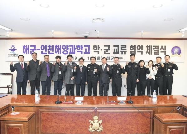인천해양과학고등학교는 충남 계룡시에 위치한 해군본부에서 군 특성화고 운영 및 발전을 통해 우수 전문병을 육성하고자 공동 노력과 상호 협력을 위한 업무 협약을 지난 12일 체결했다.