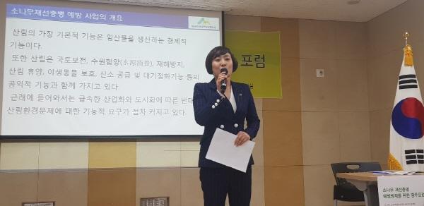 이어 안 부의장은 “앞으로는 소나무가 병에 걸리지 않도록 사후처리가 아닌 사전방제에 주력해 산림도 지키고 우리의 일상과 함께하는 소나무가 유실되는 일이 없도록 하겠다. 그것이 이번 포럼의 주요 목적이다. 이를 실현하기 위해 우리는 시범단지를 조성하는 것이다. 시범단지 조성이 결코 쉬운 일은 아니지만 성공을 확신한다”고 밝혔다.