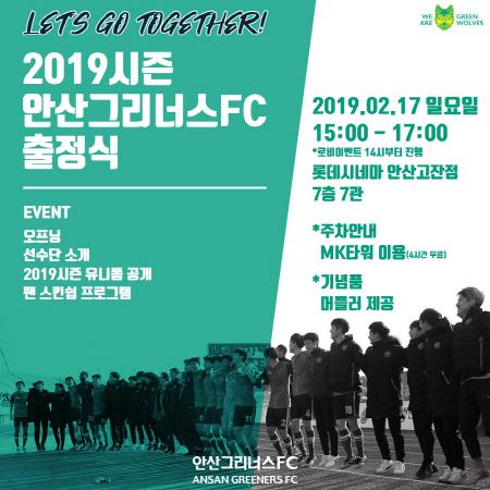 출정식에는 구단주 윤화섭 안산시장과 김필호 대표이사를 포함해 임완섭 감독 등 선수단 전원이 참석하며, 아울러 안산 그리너스 FC를 사랑하는 팬이라면 누구나 참여해 즐길 수 있다.