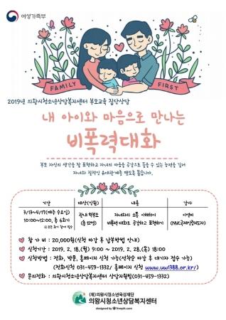 ‘내 아이와 마음으로 만나는 비폭력대화’라는 주제로 진행되는 이번 프로그램은 오는 3월 13일부터 4월 17일까지 총 6주에 걸쳐 매주 수요일마다 열린다.