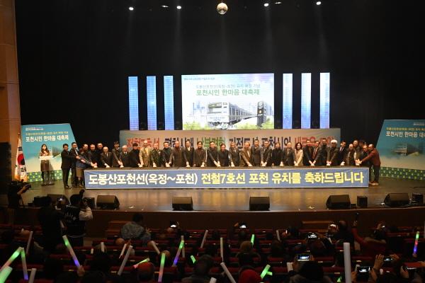 포천시는 “도봉산포천선 유치 기념 포천시민 한마음 대축제”를 지난 14일 포천반월아트홀 대강당에서 성황리에 개최했다.