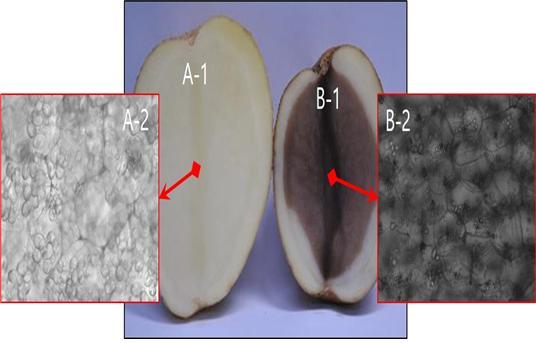 ‘흑색심부’ 증상은 밀폐 상태로 겨울 동안 저장하거나 장기간 수송할 경우, 감자의 호흡 과정에서 충분히 산소를 공급받지 못할 때 나타난다.