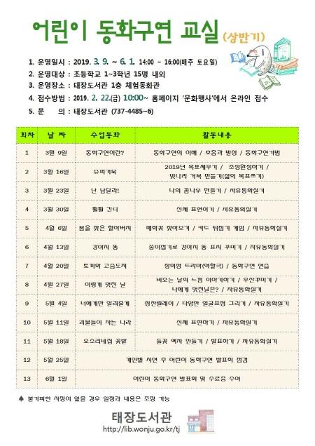 태장도서관은 오는 3월부터 6월까지 상반기 ‘어린이 동화구연교실’을 운영한다.