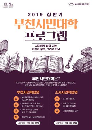 상반기 부천시민대학은 오는 3월부터 7월까지 운영되며, 부천시민 누구나 신청 가능하다. 각 과정 당 정원은 20~30명이다. 교육 참가비는 무료이나 교육과정 운영비는 학습자들이 부담한다.