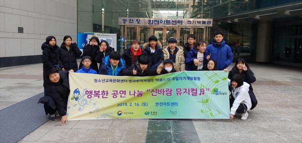 포천시 청소년교육문화센터 방과후아카데미에서는 지난 16일 주말자기개발활동으로 한전아트센터를 방문해 한국전력공사에서 주최하는 행복한 공연나눔에 선정이 되어 뮤지컬 관람과 민주시민역량교육과 관련된 ‘Respect 역사’로 주말전문체험활동을 진행했다고 전했다.