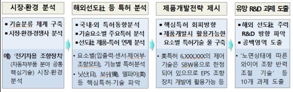 구체적으로, 해외 선도기업 특허 분석을 통해 우리 스타트업들에게 신기술에 관한 다양한 정보를 제공하는 한편, 활용 가능한 특허기술 풀을 구축해 후발주자의 제품개발전략을 지원하고, 유망 R&D 과제도 도출한다.
