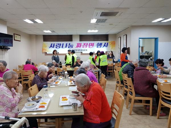 2차 봉사는 지난 18일 30여 명의 동문회원들이 참여한 가운데 노인요양시설 한나원의 어르신들을 위해 150인분의 짜장면을 직접 만들어 어르신들에게 대접하고 시설봉사자들과 함께 나누어 먹는 시간을 가졌다.