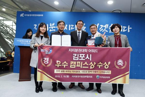 김포시는 지난 18일 오후 4시, 서울시청에서 자치분권지방정부협의회 정기총회 및 자치분권을 촉구하는 서울 선언문 발표 후 진행된 자치분권대학 어워드 시상식에서 ‘우수캠퍼스’상을 수상하는 영예를 안았다고 밝혔다.