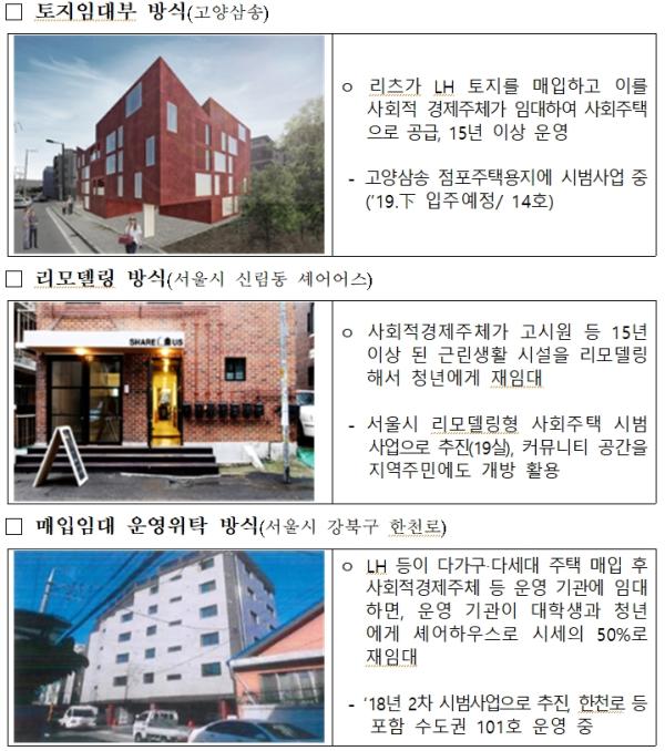 지자체 중심의 지역밀착, 수요 맞춤형으로 2022년까지 매년 2,000호 이상 사회주택을 공급하고, 토지임대나 매입임대주택 운영위탁 등 기존 사업모델 외에 지역·환경 특성에 맞는 다양한 사업모델과 프로그램을 개발을 적극 지원할 예정이다.