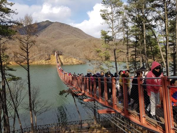 출렁다리 인근 J식당 C씨는 “출렁다리가 없을 때는 손님들이 별로 없었는데 설치 후 매출이 3∼4배 올랐다”며 “손님이 많아 직원들을 더 구해야 할 정도로 신나게 일하고 있다”고 말했다.
