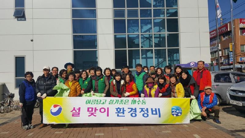 미수동(동장 권영학)에서는 지난 3일(수) 설맞이 자생단체 합동 환경정비를 통우회 등 자생단체 회원 및 직원 40여명이 참여하여 실시했다.