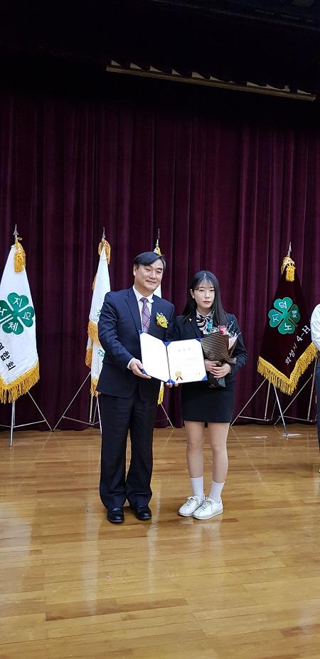 안성시 가온고등학교 4-H회 신도연 회장이 경기도 4-H연합회 연시총회에서 교육감상을 수상했다.