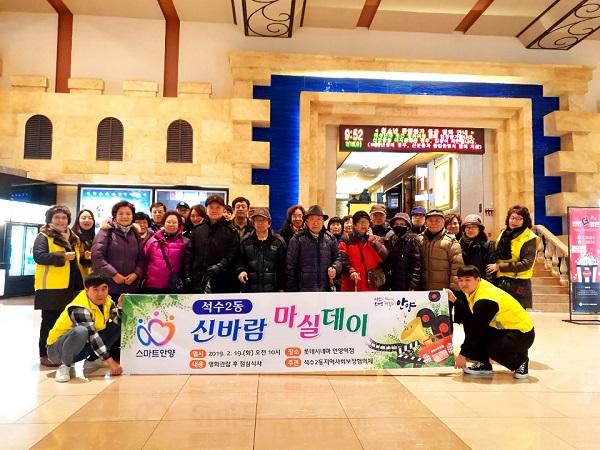 안양시 석수2동 지역사회보장협의체는 지난 19일 관내 어르신 20여명을 모시고 영화관 나들이 행사를 가졌다.