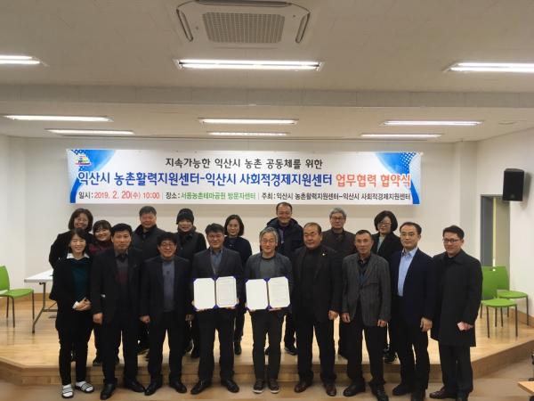 익산시 농촌활력지원센터와 사회적경제지원센터는 20일 서동농촌테마공원에서 농촌공동체 활성화를 위한 업무협약을 체결했다.