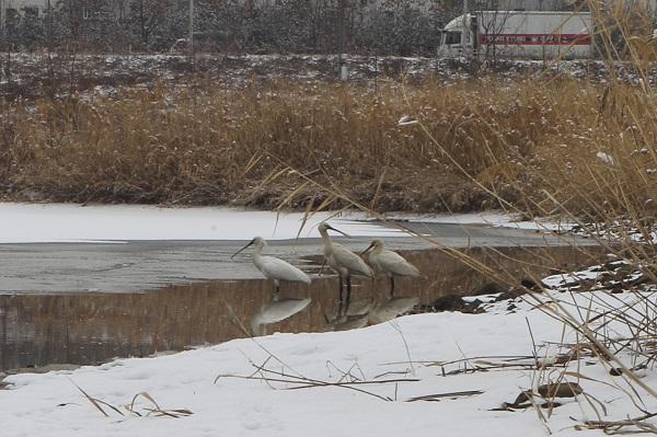 천연기념물 제205-2호며 멸종위기 야생생물 2급인 노랑부리저어새 4마리가 지난 15일부터 김포한강야생조류생태공원 습지원에서 취·서식활동을 하는 모습이 공식적으로 처음 확인됐다.