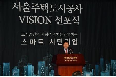 이날 비전선포식은 SH공사가 태동한지 30주년을 맞아 ‘도시공간의 사회적 가치 창출’이라는 미션과 ‘스마트 시민기업’이라는 비전을 알리기 위해 마련됐다.