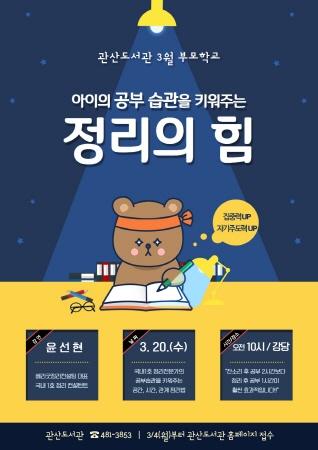 안산시 관산도서관은 3월 부모특강 프로그램으로 ‘아이의 공부습관을 키워주는 정리의 힘’ 강연을 개최한다.