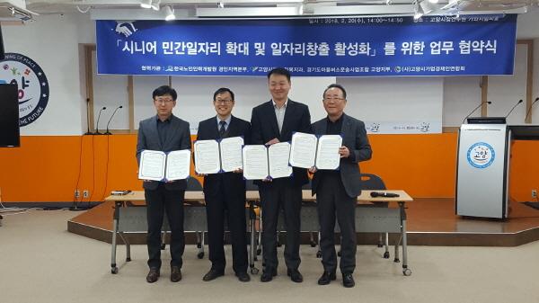 고양시는 지난 20일 한국노인인력개발원 경인지역본부와 고양시청 노인복지과, 고양시마을버스운송사업조합, 고양시기업경제인연합회가 시니어 민간일자리 확대 및 일자리창출 활성화를 위해 업무 협약을 체결했다고 밝혔다.