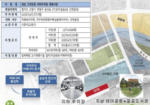 스타필드 고양점 앞 삼송근린공원에 1천여 대 규모의 지하주차장과 테마공원, 공공도서관이 들어선다.