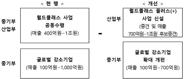 최근 수출 부진, 주력 제조업의 글로벌 경쟁력 악화 등 대내외 여건이 녹록치 않은 상황을 감안해 실물경제를 담당하는 양 부처가 정책 협의회를 정례 개최하고, 제조업 활력 회복 및 글로벌 경쟁력 강화, 중소·중견기업들의 혁신 역량 제고 및 성장 촉진 등을 위해 양 부처 정책 역량을 결집하고 수출·R&D·지역 등 양 부처의 지원 인프라와 제도를 공동 활용하는 등 긴밀히 협력하기로 했다