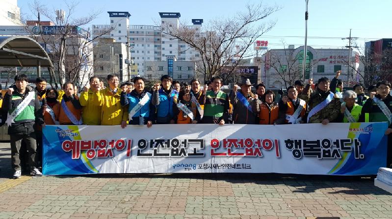 포항시가 3일 시외버스터미널 일원에서 설 맞이 귀향길 안전캠페인을 실시했다. 제239차 안전점검의 날과 연계한 이번 캠페인은 설 연휴기간 중 발생할 수 있는 안전사고를 최소화하고 시민의 안전의식 고취를 위해 마련됐으며 이재춘 포항시 부시장을 비롯해 재난안전네트워크단체, 한국전기안전공사 경북동부지사, 한국가스안전공사 경북동부지사 등 유관기관과 시민단체 등 100여명이 참여한 가운데 진행됐다. 이날 캠페인에서는 시외버스터미널 및 밸류플러스 등을 이용하는 시민과 상인들에게 성묘길 안전한 야외활동, 가정 안전점검, 화재발생시 안전 행동, 귀성길 안전운전 요령 등이 담긴 전단지와 안전점검의 날 홍보물을 배부하며 안전사고 예방을 당부했다. 특히 한국가스‧전기안전공사 경북동부지사는 노후화된 가스․전기 시설에 대한 안전점검을 실시해 행사의 의미를 더했다. 이재춘 부시장은 “민족 최대의 명절 설을 맞아 서민생활대책, 귀성객 교통대책, 쓰레기 관리 종합대책, 전통시장 활성화 대책 등 종합대책을 수립하고, 연휴기간 비상근무실시 등 귀성객들이 안전하게 명절을 보낼 수 있도록 최선을 다 하겠다”고 말했다.