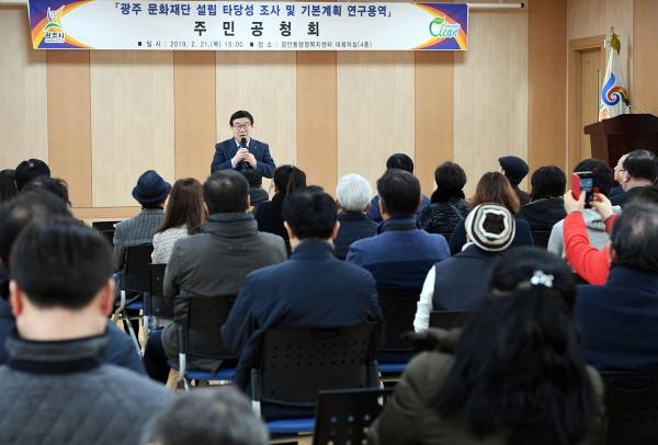 광주시는 지난 21일 경안동 행정복지센터 회의실에서 ‘너른고을 광주문화재단 설립 타당성 조사 연구용역 주민공청회’를 개최했다.