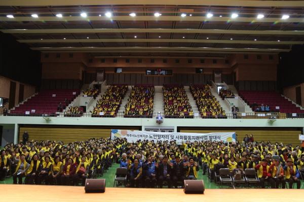 파주시노인복지관은 지난 19일 파주시민회관 대공연장에서 2019년 노인일자리 및 사회활동지원사업 참여자 600여명이 참석한 가운데 발대식과 안전교육을 실시했다.