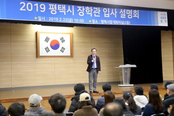 평택시는 22일 시청 대회의실에서 평택시 장학관 입사생을 위한 입사 설명회를 실시했다.