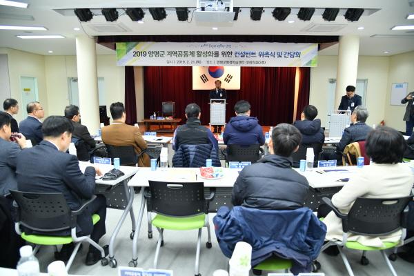 양평군은 지난 21일 평생학습센터 대회의실에서 공개모집을 통해 선정된 지역공동체 활성화 사업 컨설턴트 34명에 대한 위촉식 및 간담회를 실시했다.