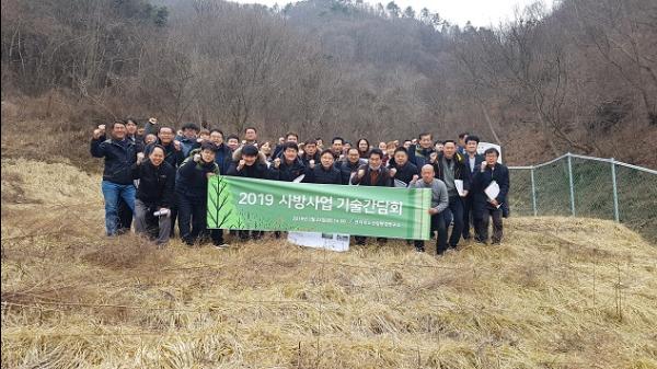 간담회에는 도, 시·군 공무원과 도내 소재 산림조합, 산림토목법인 등 사방사업 관계자 60여명이 참석해 2019년 사방사업 추진설명과 자연경관과 조화로운 친환경 사방공법 견학 및 산림토목사업 발전을 위한 건의 및 토론을 실시했다.