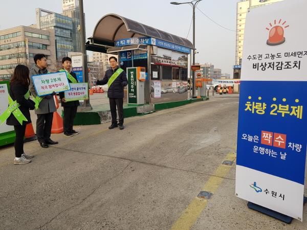 미세먼지 비상저감조치 발령에 따라 22일 수원시 관계자들과 함께 차량2부제 캠페인 전개