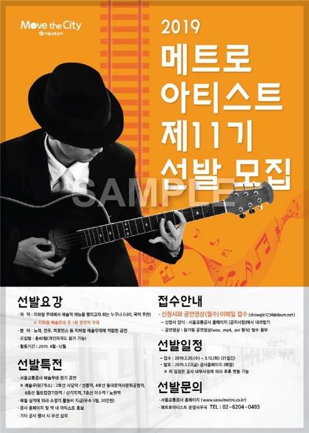 서울교통공사가 지하철 예술무대에서 공연할 ‘메트로아티스트’ 제11기를 다음달 12일까지 공개 모집한다.